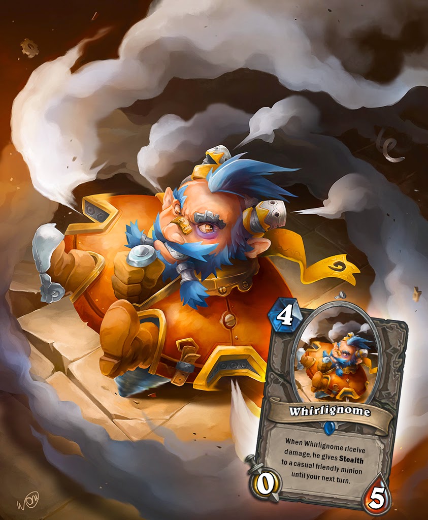 Then it could be something like: "When Whirlignome riceive damage, he gives Stealth to a casual friendly minion until your next turn".